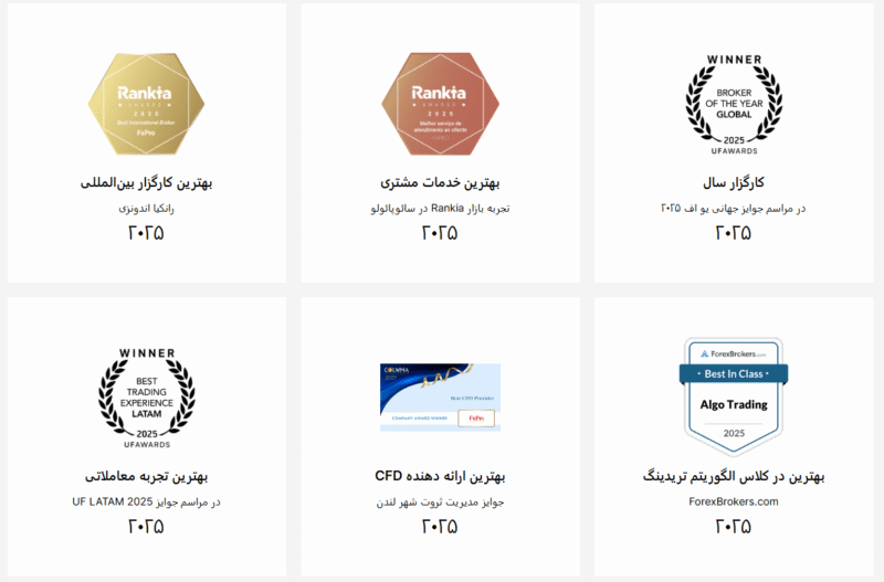 نمونه ای از جوایز دریافتی بروکر اف ایکس پرو در 3 سال گذشته که نام برده شد.